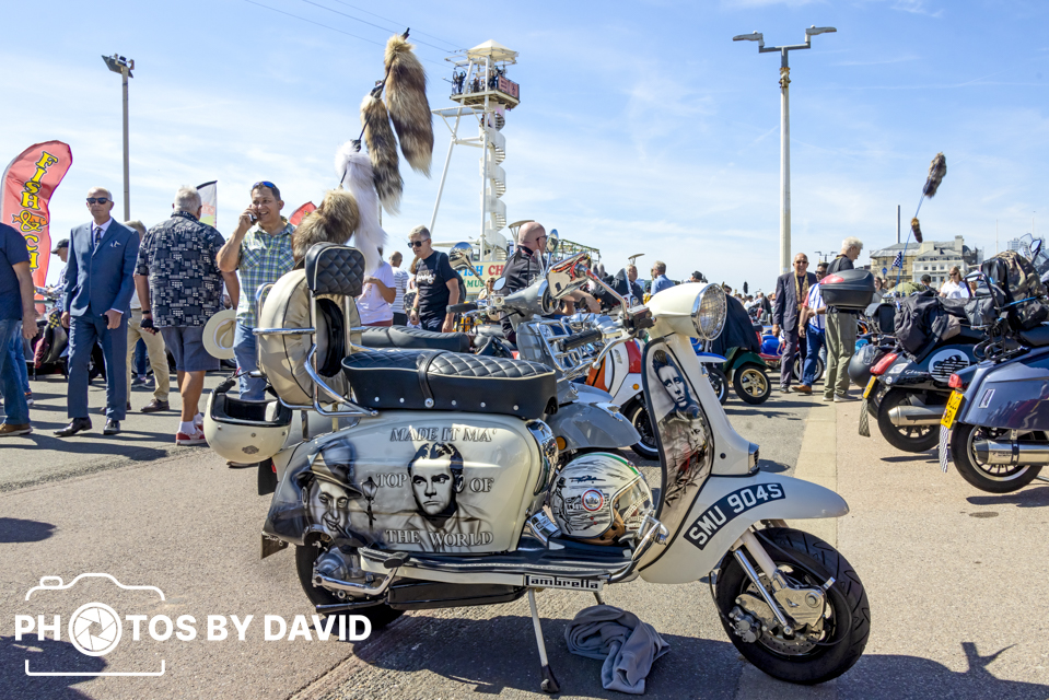 This the annual Mod All Weekender on Brighton seafront. Where followers of British Mod culture arrive from all over the UK to attend this gathering covering the August Bank Holiday